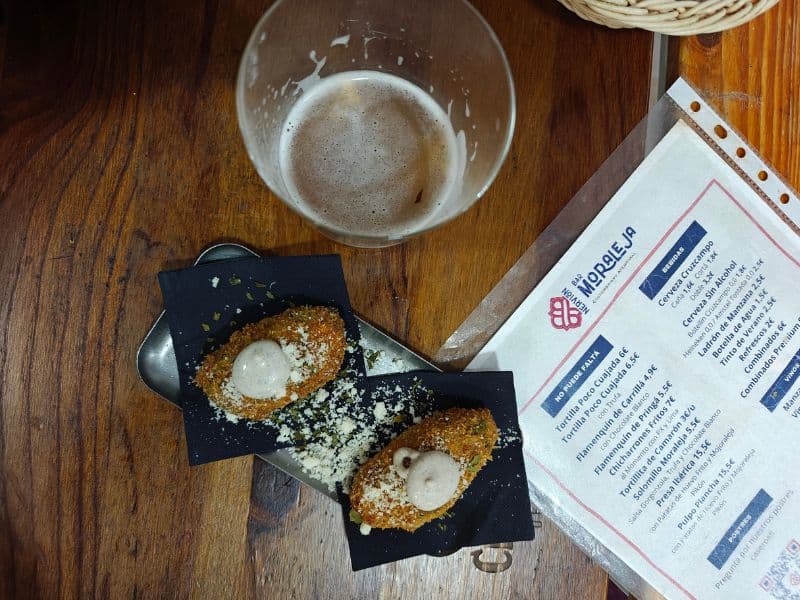 La oferta de bebidas en Bar Moraleja está meticulosamente seleccionada para complementar su cocina. Aunque se mantiene en el espíritu de una taberna, el bar ha ganado reconocimiento por su excelente manejo del grifo y por «tirar» la cerveza de Sevilla de la mejor manera, elevando la simple caña a una experiencia artesanal. Además de una cerveza perfectamente servida, la bodega ofrece opciones de vinos y licores que acompañan la personalidad innovadora de sus tapas, asegurando que cada maridaje realce los sabores de los platos más creativos del menú.